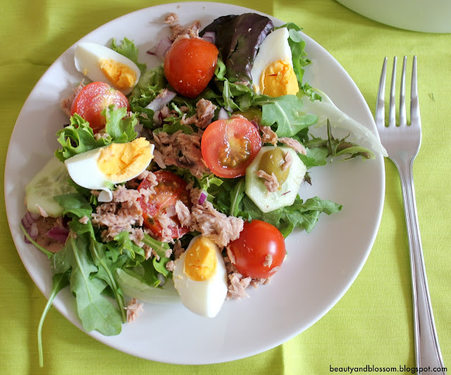 Jedną z moich ulubionych sałatek jest sałatka nicejska. Jest ona niezwykle pożywna, zdrowa i idealna dla wszsytkich dbających o linię. Sałatka nicejska pochodzi z Francji, ale znana jest na całym świecie, gdzie powstało jej wiele wersji. Ja najbardziej lubię jej klasyczny wariant bez gotowanych warzyw tj. fasolka szparagowa czy ziemniaki. Zawiera ona tuńczyka, anchois, pomidory, ogórka, oliwki, cebulę i jajko. Można dodawać do niej też inne składniki,a jakie to zależy tylko jest od waszej wyobraźni.